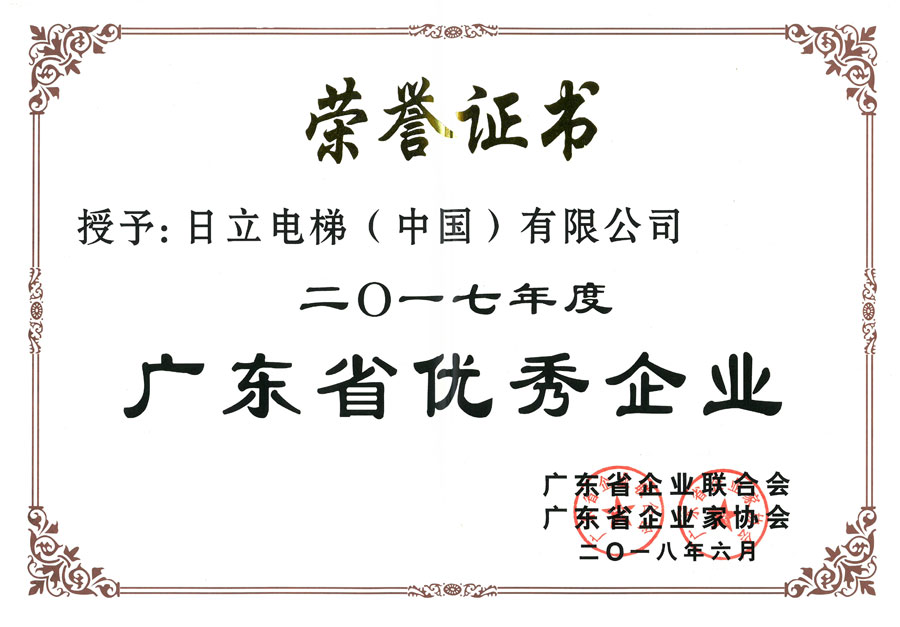 | 日立電梯獲“2017年度廣東省優(yōu)秀企業(yè)”稱號 |