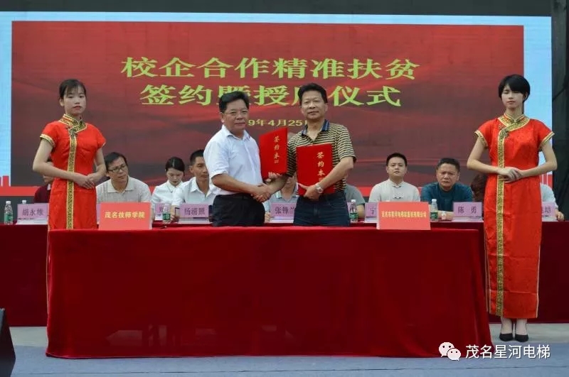 精準扶貧不是空喊口號,而是要扎實開展技能扶貧,讓“授人以魚”轉為“授人以漁”。校企雙方將深化精準招生、精準教學、精準就業(yè)的合作,讓每一個來到茂名技師學院的貧困學子都能真正實現(xiàn)“學會一項技能,帶富一個家庭”目標,讓每一個茂名市星河電梯起重機有限公司的員工都能真正感受電梯人的本領和魅力。